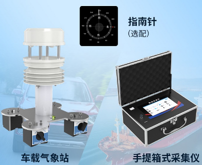 车载气象站 主要是由【手提箱式采集仪】+【车载气象站采集设备】组成,专门针对车辆、船舶等移动交通工具的气象监测而研发。多采集装置一体式设计,体积小、重量轻,安装方便;采用优质抗紫外线材质,使用寿命长,且内置电子指南针(选配),安装时无方向要求。