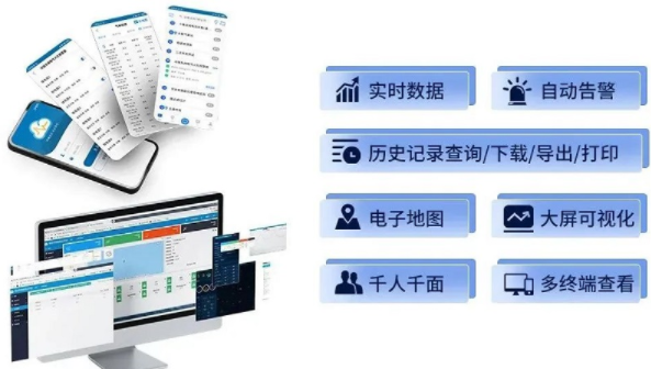 平台拥有科技美观的大屏界面,无需鼠标操作即可自动轮显所有设备的监测数据,为用户提供更加全面、直观和高效的统计分析和监控体验,从而提升工作效率和决策能力。