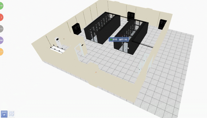 通过鼠标配合键盘上下左右按键操作,巡检人员可以以第一人称视角在模拟场景中自由“行走”,视角可以实现360度旋转,支持多角度切换,让巡检人员能够真实形象地感知机房场景。