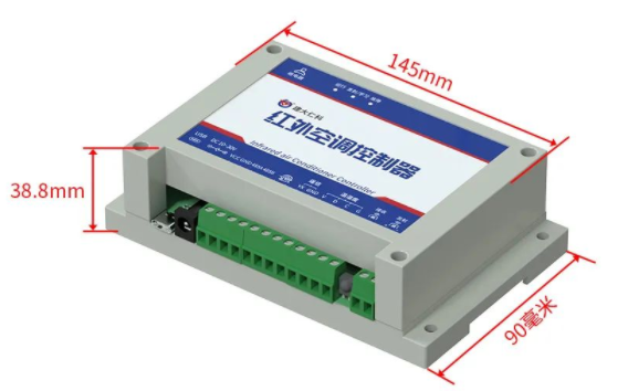 红外空调控制器是一款多功能的空调控制器。设备具备学习功能,可通过设备上的红外接收学习空调遥控器的红外码,进而代替遥控器对空调进行控制,最多可学习 139 组红外码。设备可通过设定周期、温湿度上下限、采集开关量信号以及设置多个时间段对现场的 空调选择适合的方式进行自动控制。还可通过标准 ModBus-RTU 485 通信协议对设备进行远程控制以及实现来电自启。带有批量下载批量导入功能,只需学习一台空调遥控器的指令就可以实现多台设备配置,通过 APP 可以批量召测、批量下载,节省操作时间。设备自带存储,记录空调用电总量、开关机控制失败以及温湿度超过上下限等内容,通过手机配置 APP 导出记录,方便快捷。