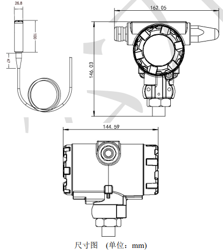 | 线长 | 0-5m量程以下选型为5m,0-5m量程以上选型为量程长度 |
