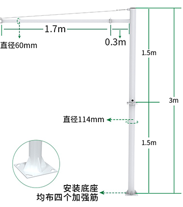 一对一接线方式:此方式适用于带集线器的箱体,也是立杆内部走线,每台设备都配有2.5米延长线,延长线的公头母头均贴有线标,用户按线标将延长线公头与设备连接,另一端穿过支架放进立杆内部;立杆安装配电箱的部位做有微联孔,箱体中的防水对插线公头也贴有线标,用户使用时需将微联孔敲开,将立杆中的线通过微联孔勾出,接在配电箱内部对应线标的公头上即可完成安装。